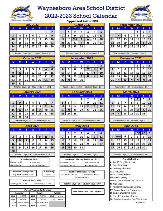 WASD 2022-2023 School Calendar